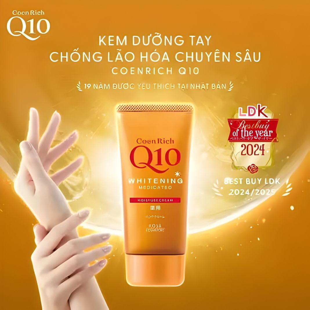 Kem tay dưỡng ẩm CoenRich Q10 Whitening Medicated Hand Cream (mã 4971710587517) là dòng kem dưỡng tay cao cấp của KOSÉ, rất phổ biến tại Nhật và được nhiều người dùng Việt Nam tin tưởng lựa chọn. Sản phẩm hội tụ giữa khả năng dưỡng ẩm, chống lão hóa và làm sáng da — là giải pháp toàn diện cho bàn tay khỏe mạnh và rạng rỡ.